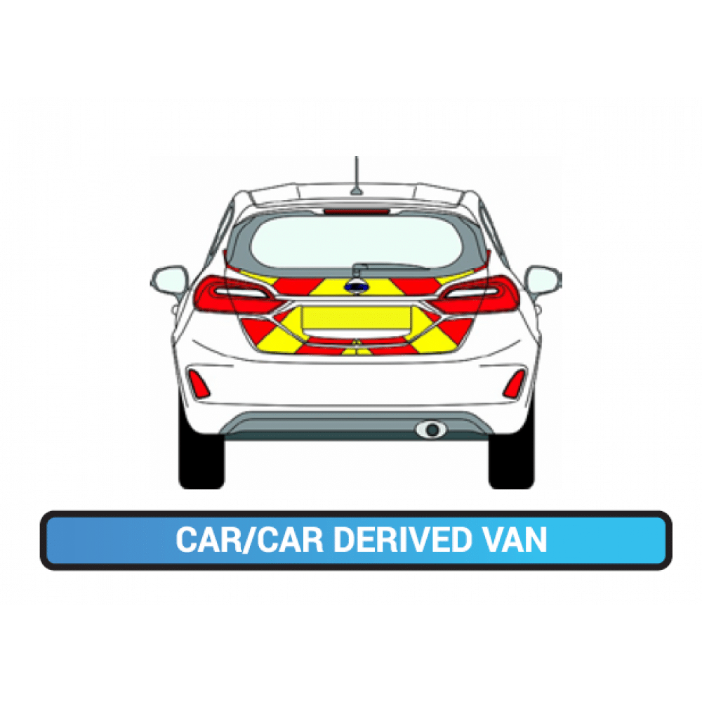 These are large pieces of reflective yellow panels cut to suit your vehicle and installed into position. Strips of red reflective are then applied over the yellow to create the desired effect.